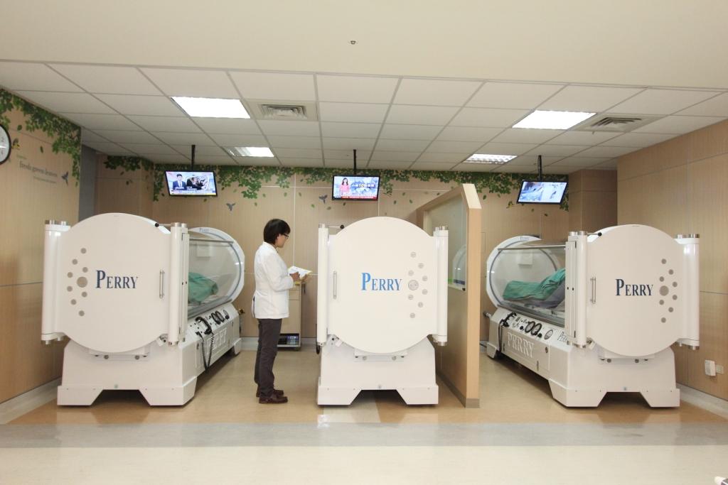 大千綜合醫院高壓氧中心陳克銘醫師表示,由於該戶人家的房子設計,浴室正好位於室內正中央,熱水器也是安裝在室內且沒有設置強制排氣功能,因此在四位家人陸續洗完澡後,瓦斯燃燒產生的一氧化碳就積存於室內,才會釀成一氧化碳中毒的情形。一氧化碳會讓血色素無法與氧氣結合,導致血液中的一氧化碳濃度提升、氧氣下降,初期會感覺輕微頭痛和頭暈,中毒程度提升後就會有噁心、嗜睡的症狀,嚴重甚至陷入昏迷。高壓氧治療是讓病人在完全密閉的壓力艙內吸入100%純氧,以高濃度氧氣置換出體內的一氧化碳,同時改善身體組織缺氧狀況及增加細胞存活。