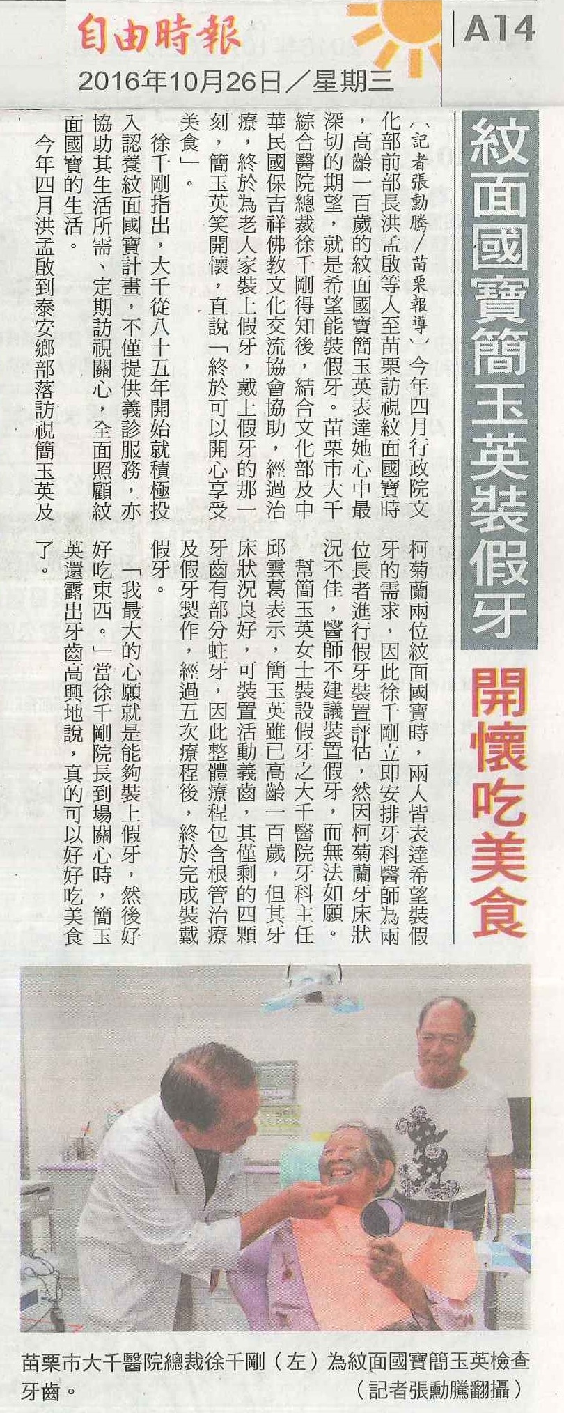 105.10.26自由:紋面國寶簡玉英裝假牙開懷吃美食
