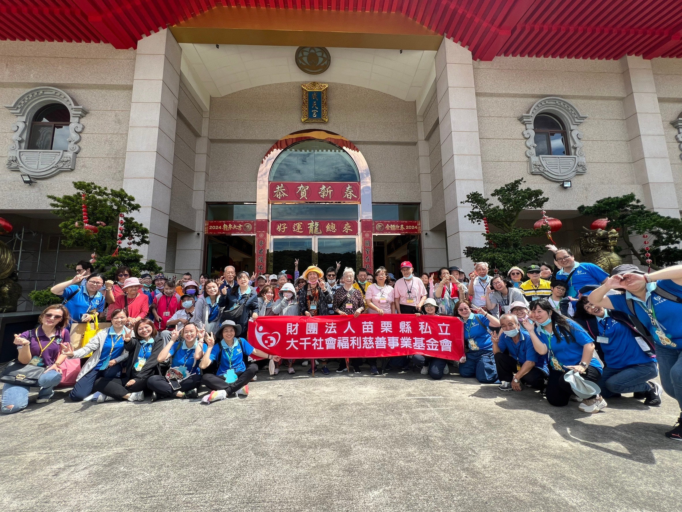 大千慈善事業基金會主任吳明昌表示,苗栗縣獨居長輩、失能、失智者超過四萬人,大千基金會自1998年成立以來,積極關懷弱勢族群,提供居家服務、日間照顧、失智共照據點及獨居長輩緊急救援鈴等服務,協助個案獲得良好的照顧。在服務的過程中,了解到照顧者與被照顧者各自身心上的壓力,也看到獨居長輩缺乏陪伴的孤單,因此希望可以透過支持性團體活動的方式,建立紓壓管道、增加人際互動的機會,才促成此次一日遊的活動。