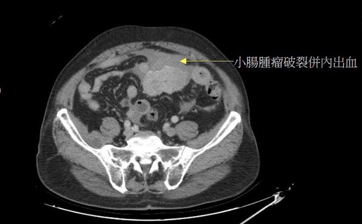 病人因腹痛就醫,檢查出罕見的小腸癌,且已破裂造成內出血。
