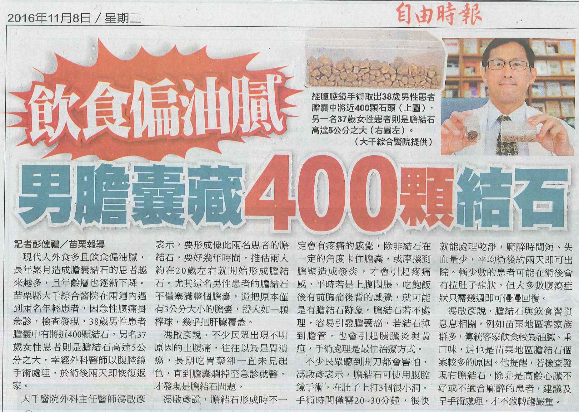 105.11.08自由:飲食偏油膩男膽囊藏400顆結石