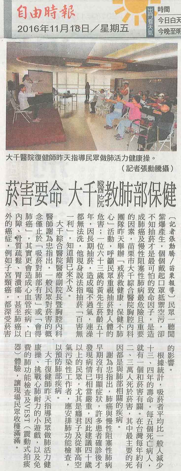 105.11.18自由:菸害要命大千醫院教肺部保健
