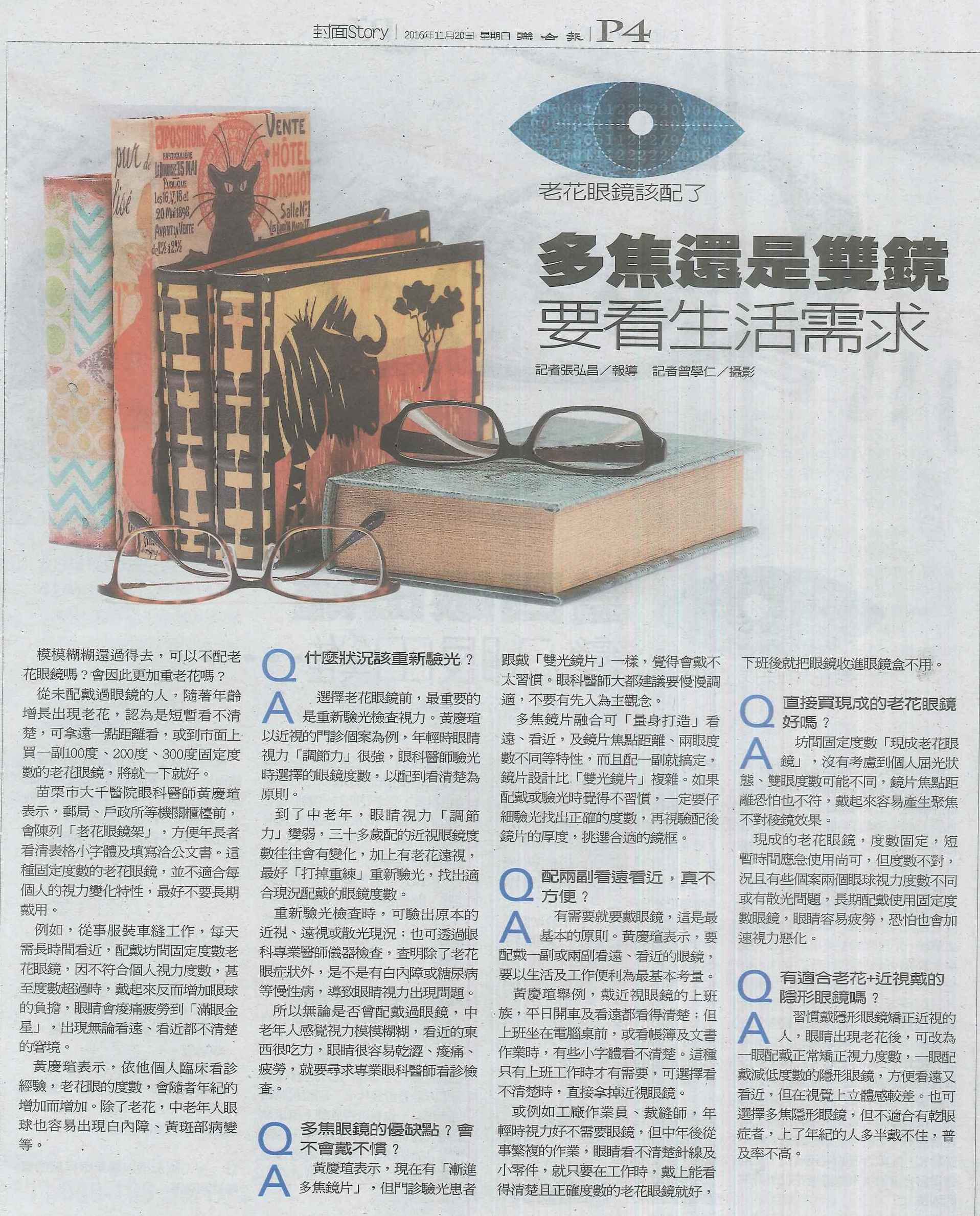 105.11.20聯合:多焦還是雙鏡要看生活需求