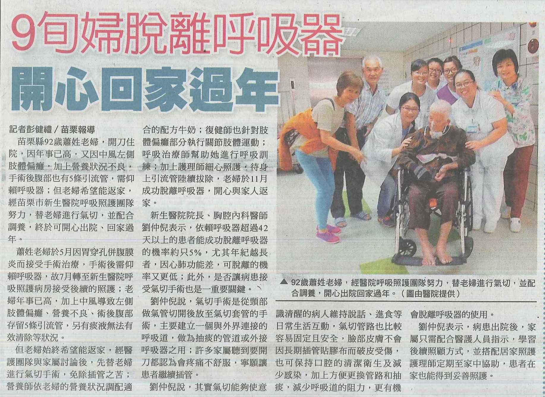 105.12.13自由:9旬婦脫離呼吸器開心回家過年