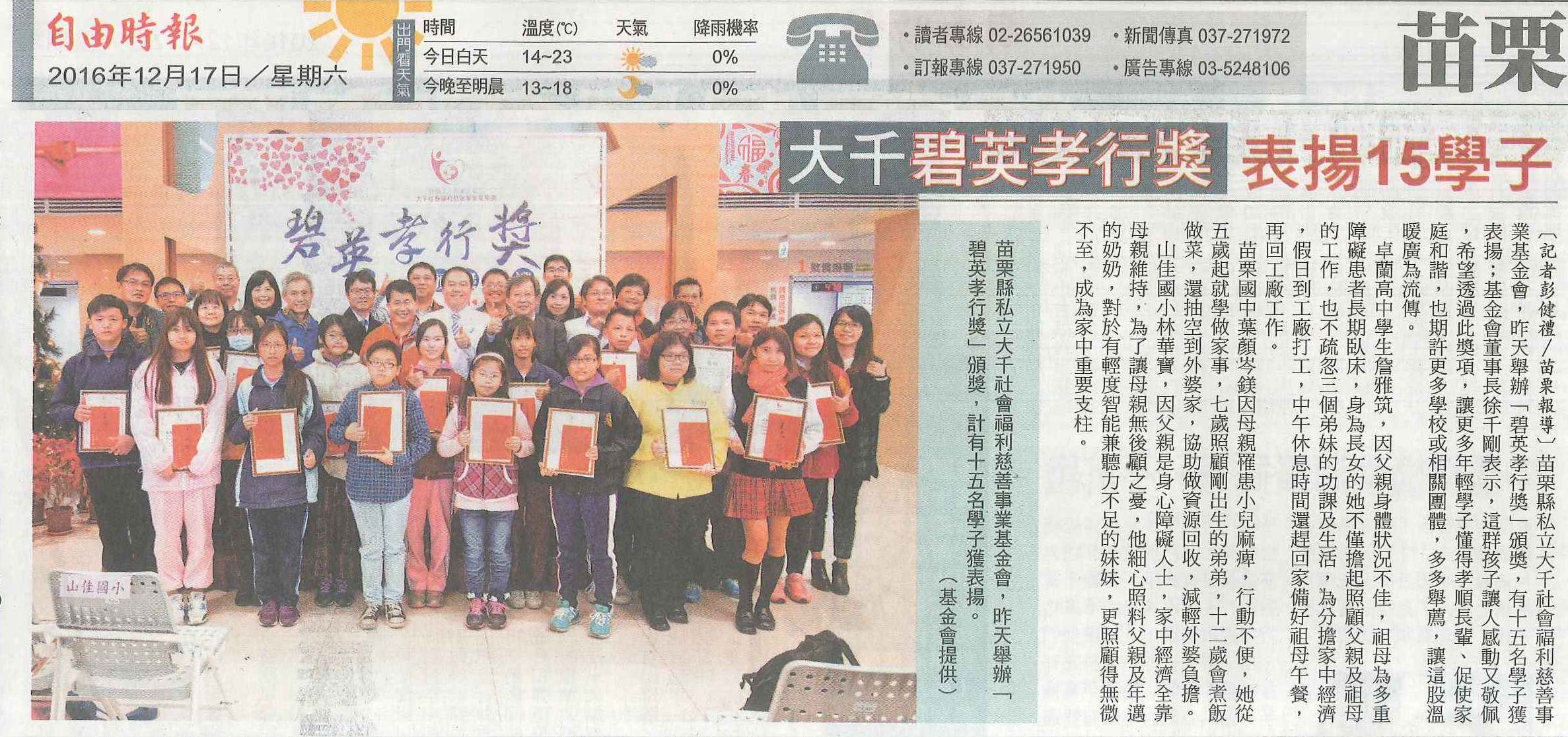 105.12.17自由:大千碧英孝行獎表揚15學子