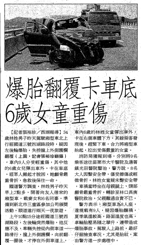 102.06.01聯合:爆胎翻覆卡車底6歲女童重傷
