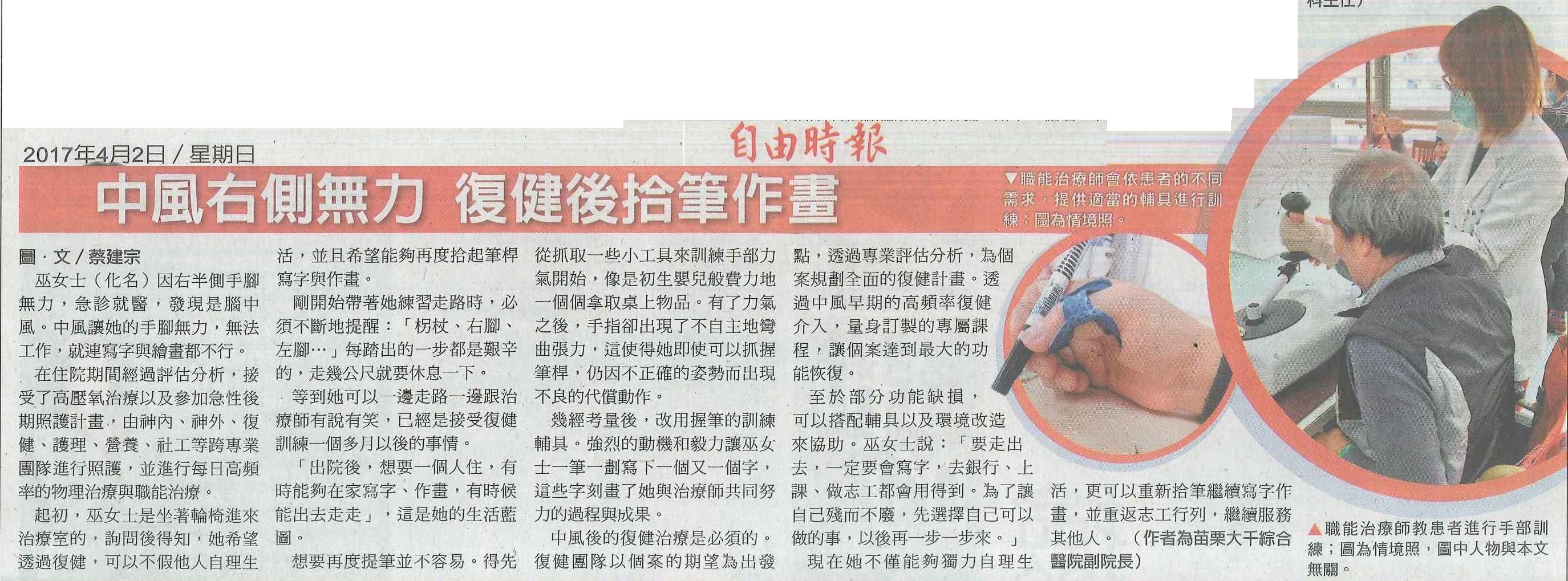 106.04.02自由:中風右側無力復健後拾筆作畫