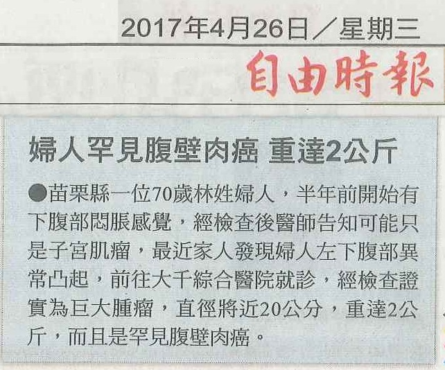 106.04.26自由:婦人罕見腹壁肉癌重達2公斤