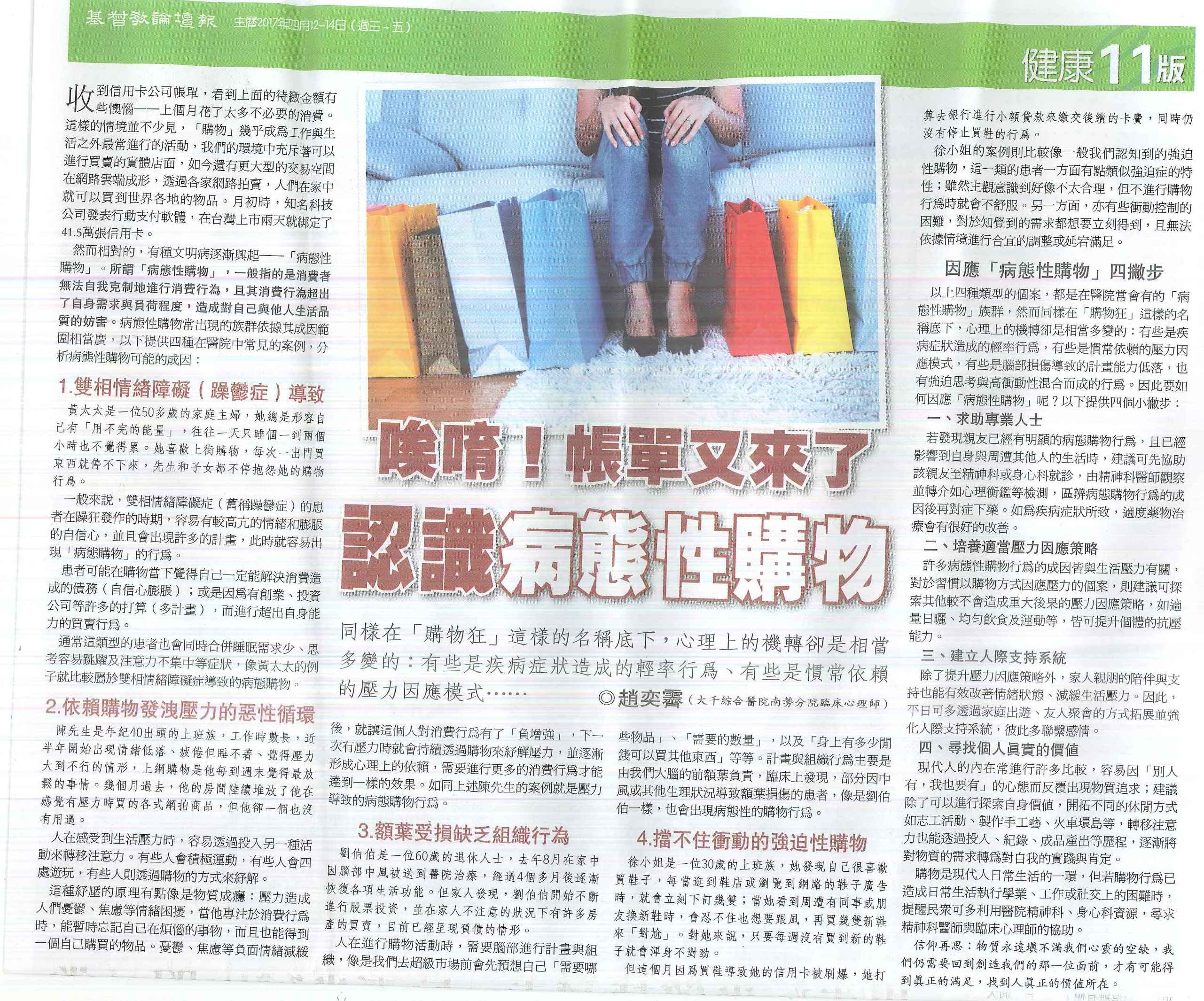 106.04.12基督教論壇報:哎喲!帳單又來了認識病態性購物