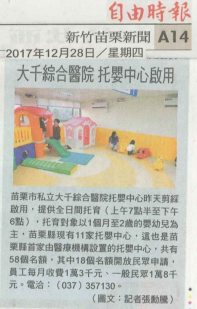106.12.28自由:大千綜合醫院托嬰中心啟用