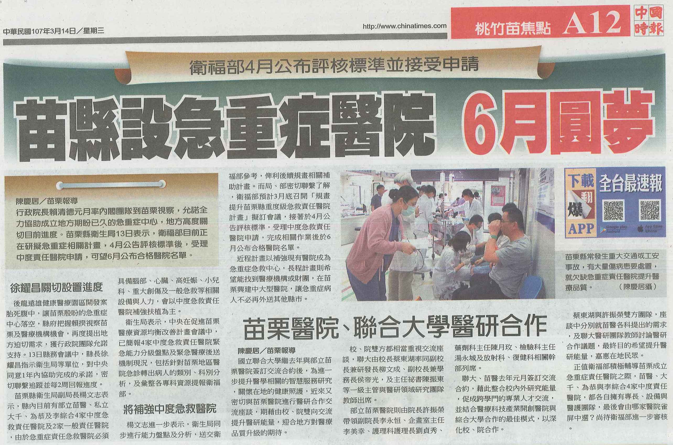 107.03.14中時:苗縣設急重症醫院6月圓夢