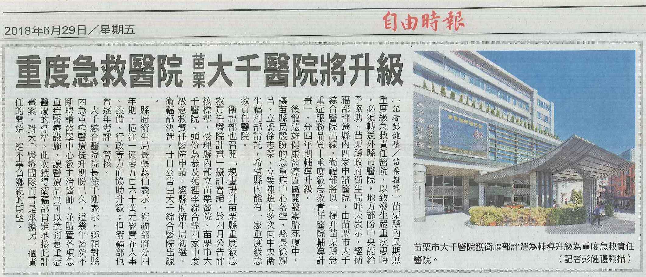 107.06.29自由:重度急救醫院 苗栗大千醫院將升級