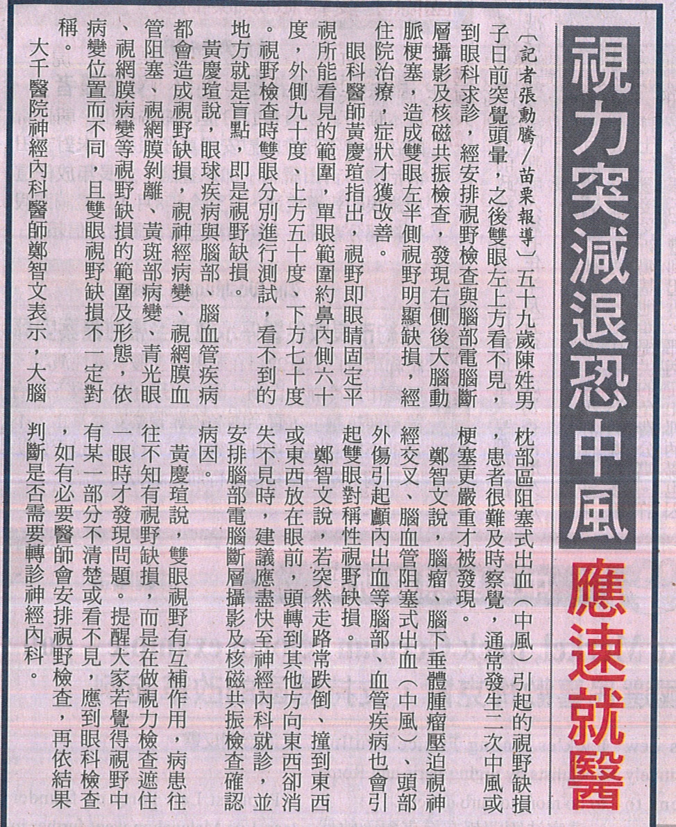 103.12.24自由:視力突減退恐中風應速就醫