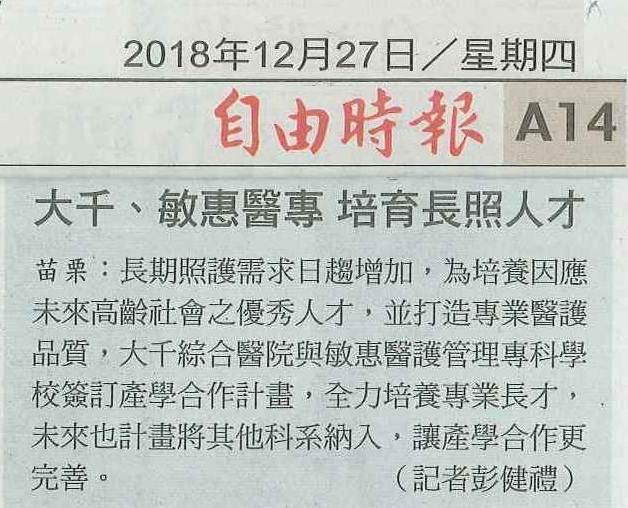 107.12.27自由:大千、敏惠醫專培育長照人才