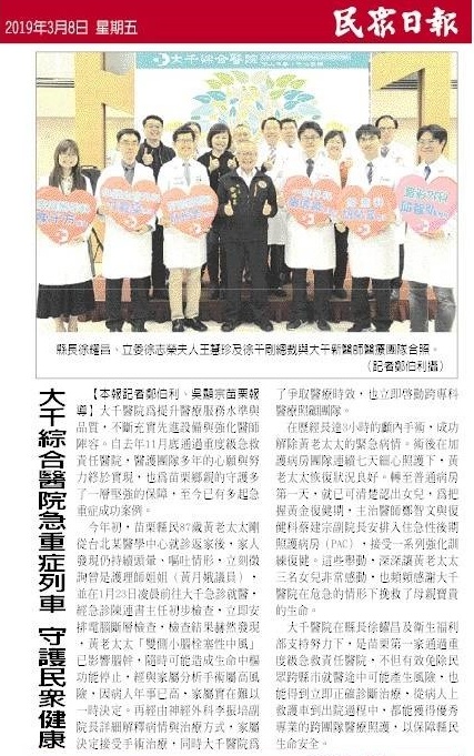 108.03.08民眾日報:大千綜合醫院急重症列車守護民眾健康