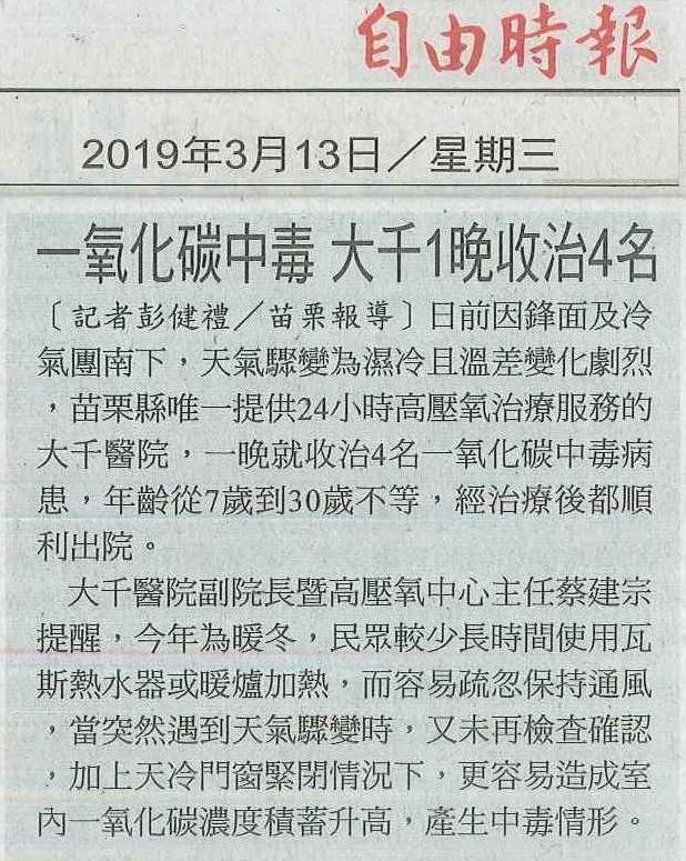 108.03.13自由:一氧化碳中毒大千1晚收治4名