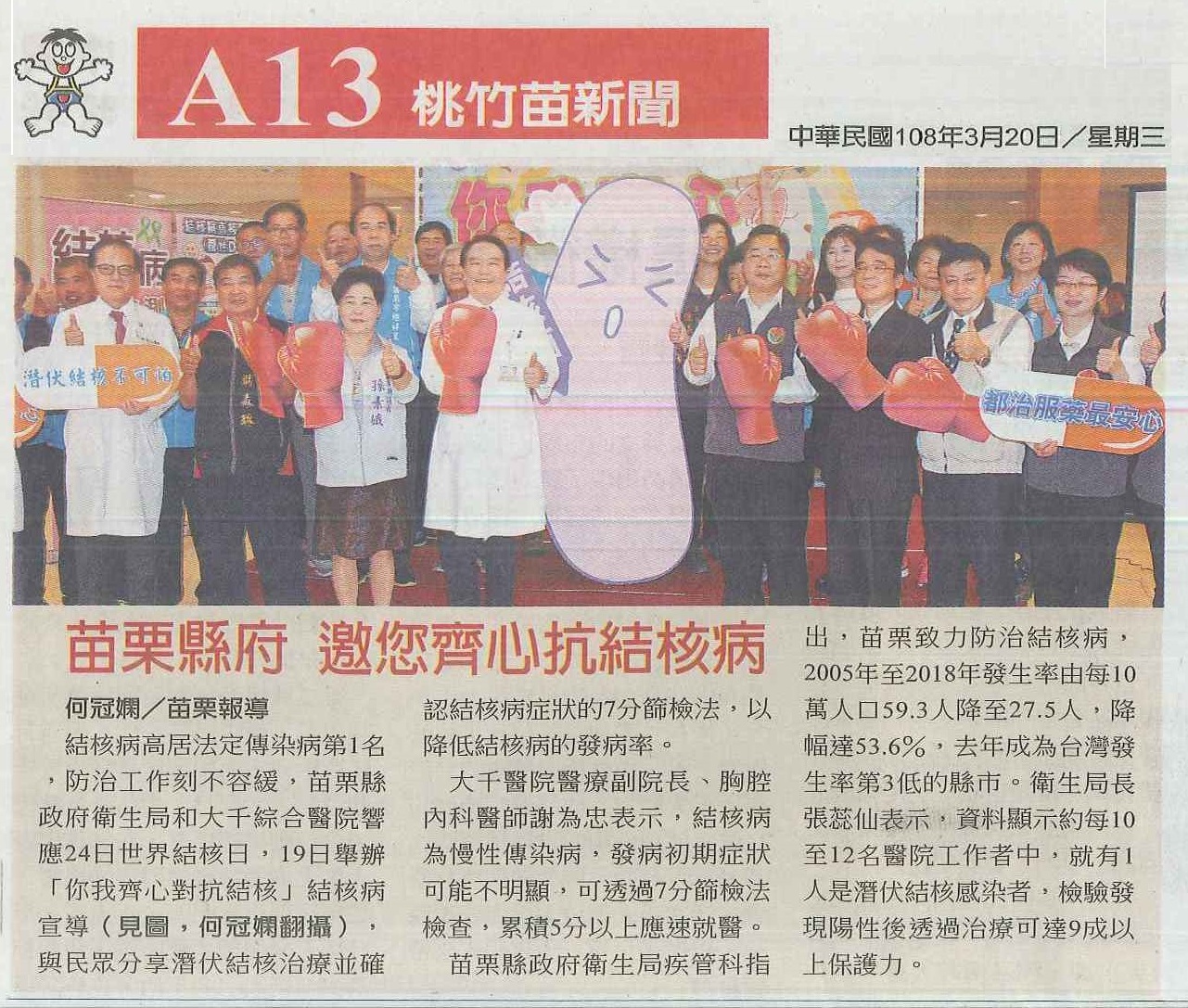 108.03.20中時:苗栗縣府邀您齊心抗結核病