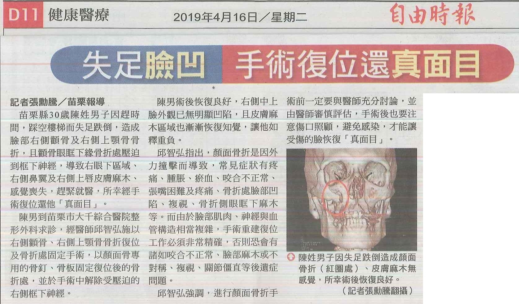 108.04.16自由:失足臉凹手術復位還真面目