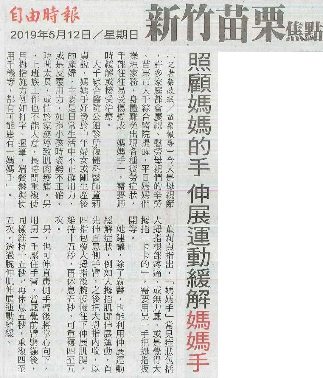 108.05.12自由:照顧媽媽的手伸展運動緩解媽媽手