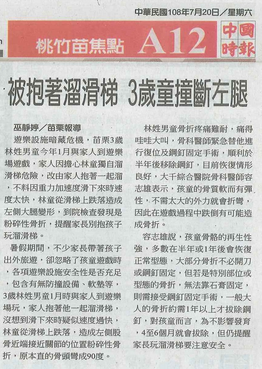108.07.20中時:被抱著溜滑梯3歲童撞斷左腿