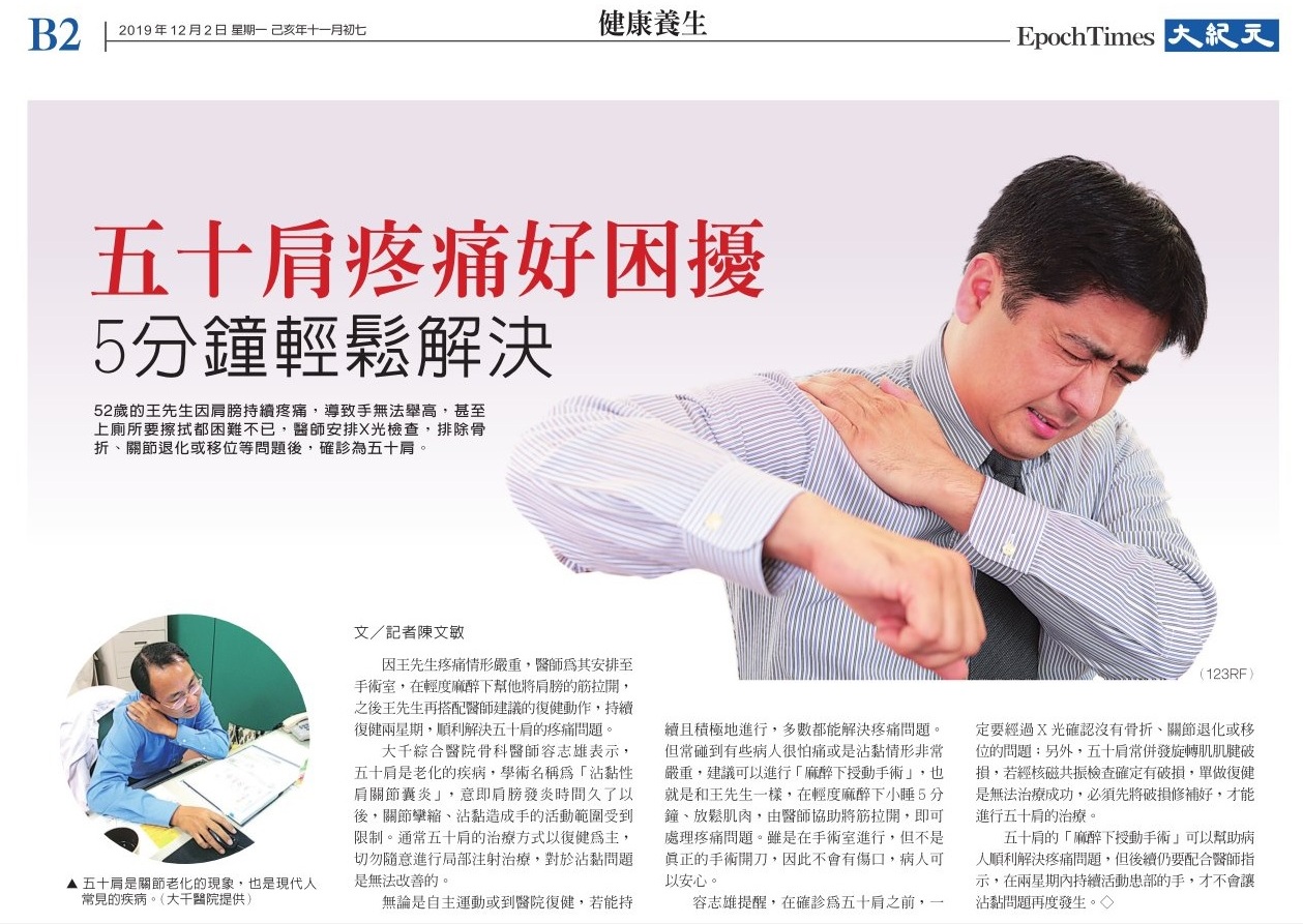 108.12.02大紀元時報:五十肩疼痛好困擾 5分鐘輕鬆解決