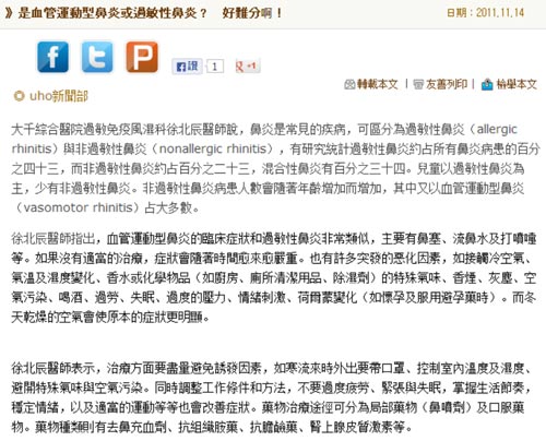 uho優活健康網:是血管運動型鼻炎或過敏性鼻炎? 好難分啊!(免疫風濕科徐北辰)