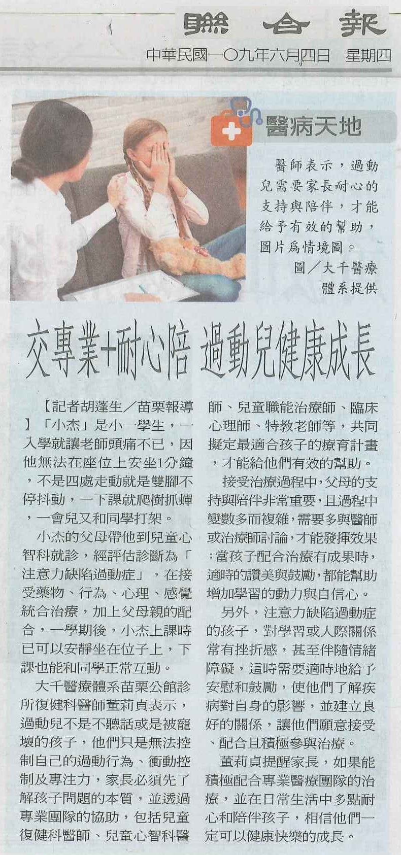 109.06.04聯合:交專業加耐心陪過動兒健康成長