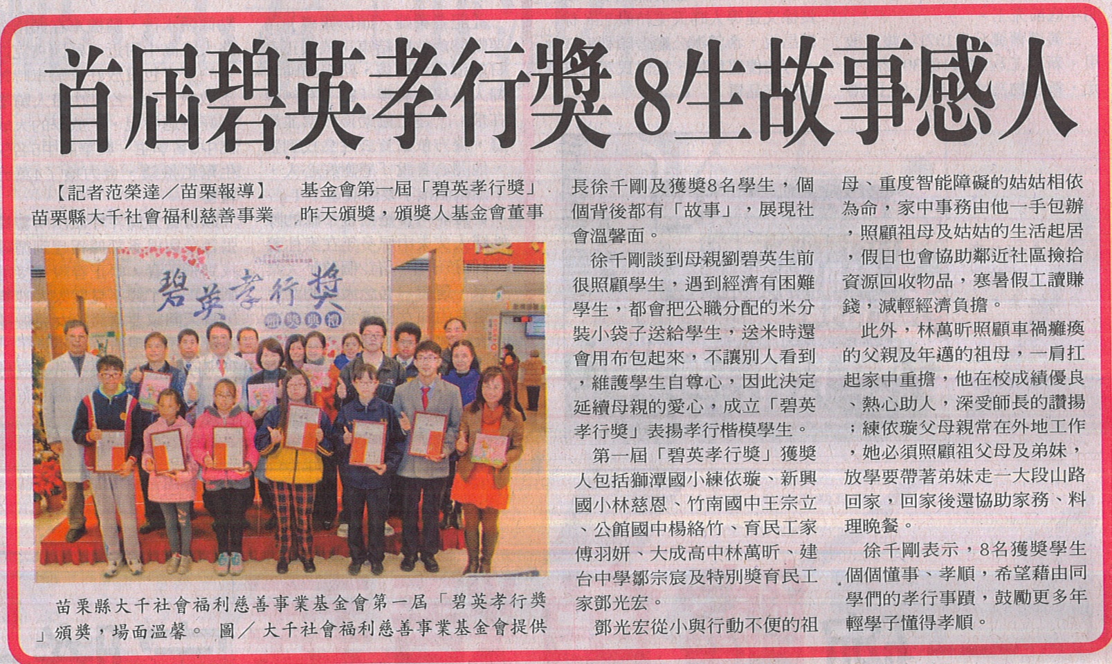 104.01.15聯合:首屆碧英孝行獎8生故事感人