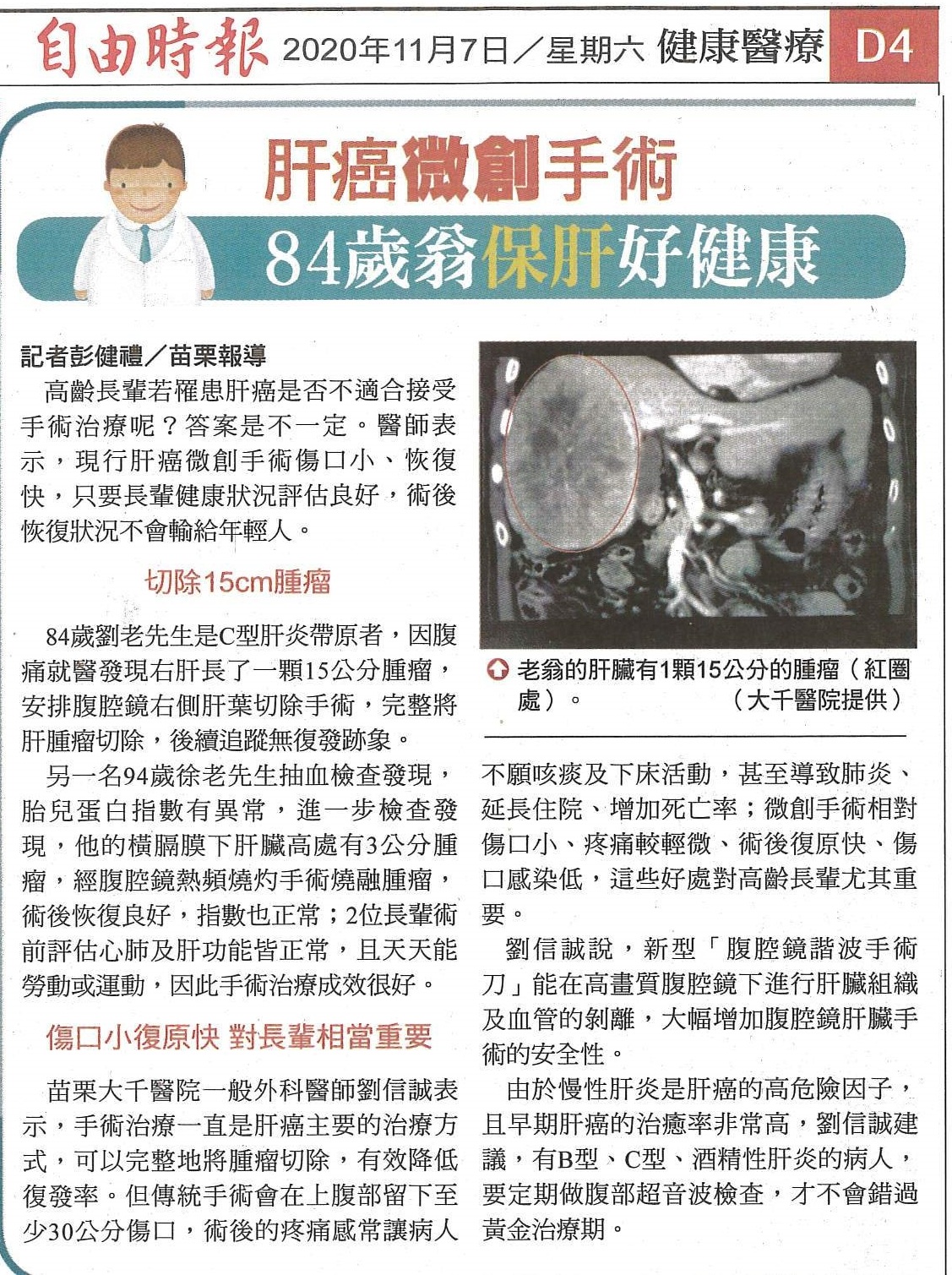 1091107自由-肝癌微創手術84歲翁保肝好健康