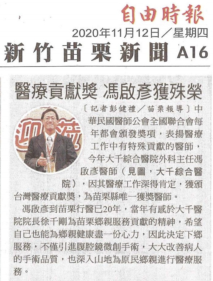 1091112自由-醫療貢獻獎馮啟彥獲殊榮