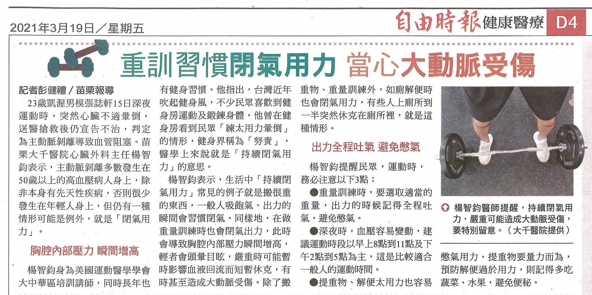 1100319自由-重訓習慣閉氣用力當心大動脈受傷