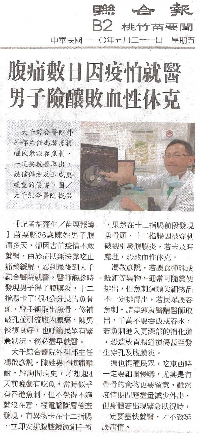 1100521聯合-腹痛數日因疫怕就醫男子險釀敗血性休克