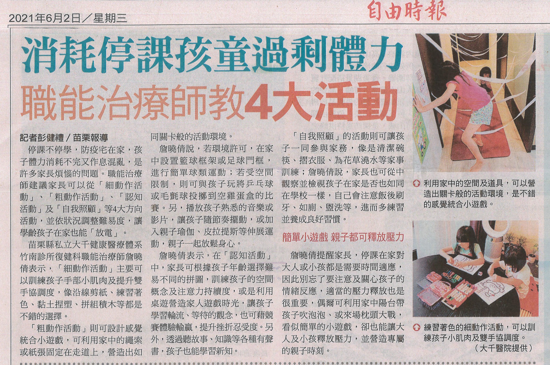 1100602自由-消耗停課孩童過剩體力 職能治療師教4大活動