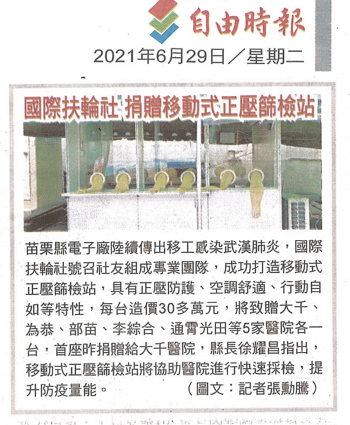 1100629自由-國際扶輪社捐贈移動式正壓篩檢站