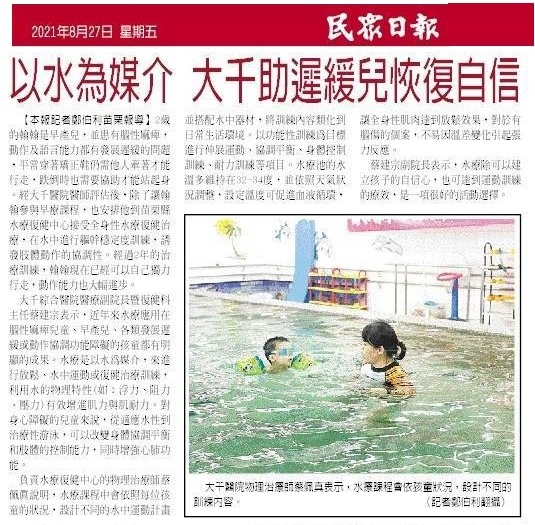 1100827民眾日報-以水為媒介大千助遲緩兒恢復自信