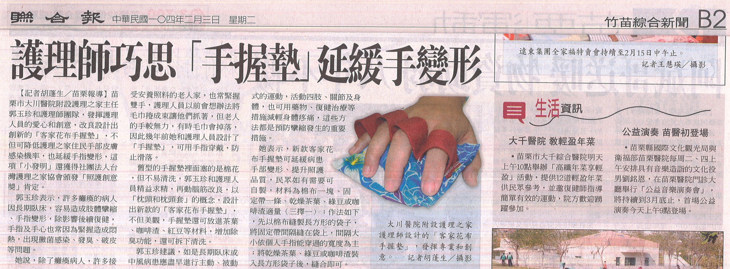 104.02.03聯合:護理師巧思手握墊延緩手變形