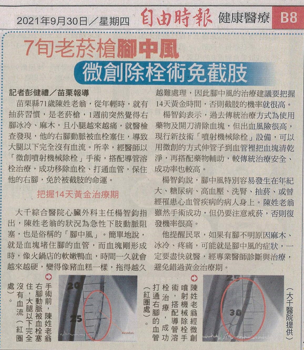 1100930自由-7旬老菸槍腳中風微創除栓術免截肢
