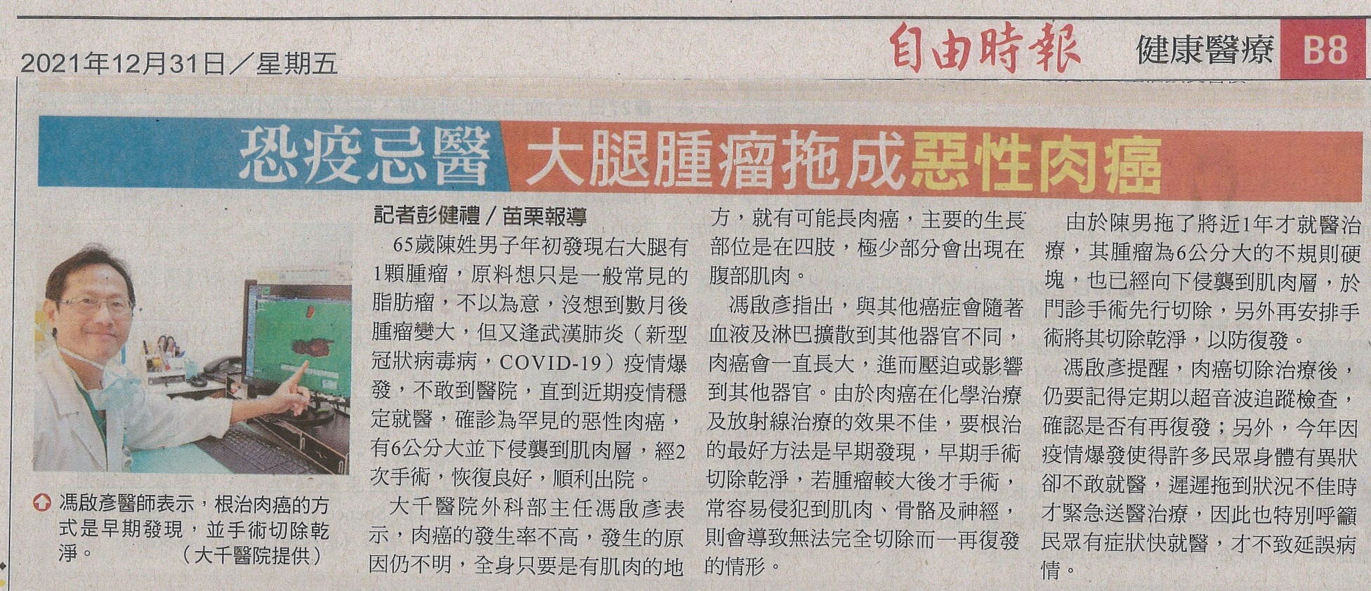 1101231自由-恐疫忌醫大腿腫瘤拖成惡性肉癌