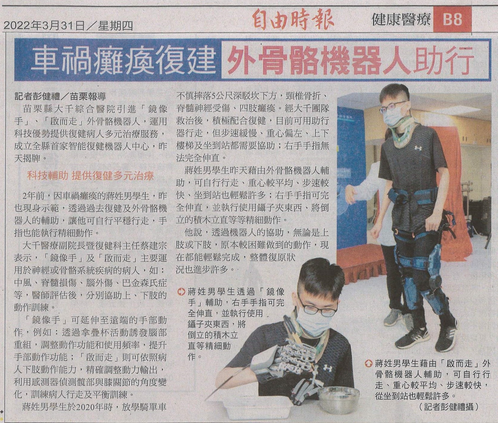 1110331自由-車禍癱瘓復健外骨骼機器人助行