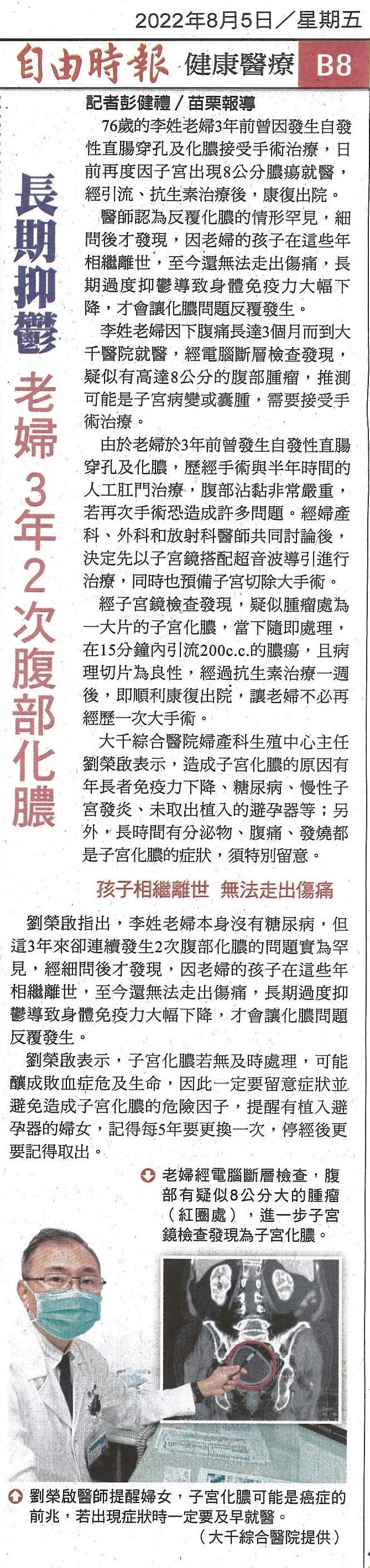 長期傷心過度 7旬奶奶3年內連兩次腹部化膿