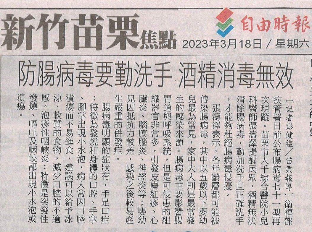 1120318自由-防腸病毒要勤洗手 酒精消毒無效