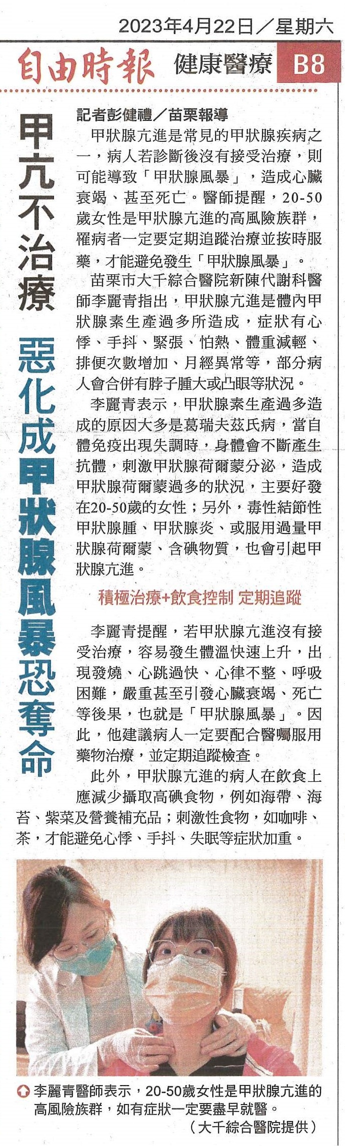 1120422自由-甲亢不治療惡化成甲狀腺風暴恐奪命