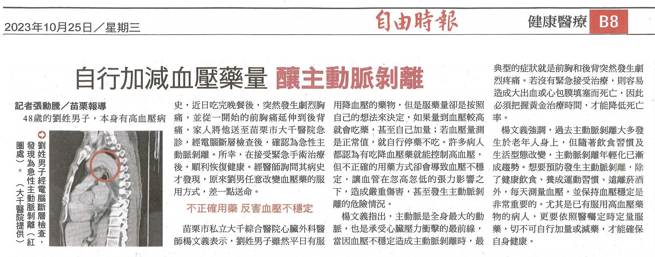 1121025自由-自行加減血壓藥量 釀主動脈剝離