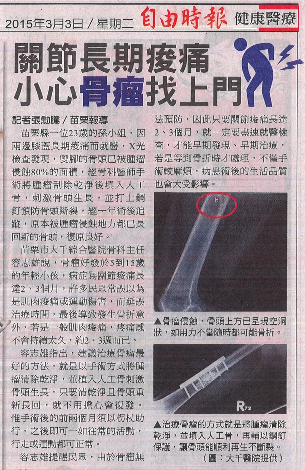 104.03.03自由:關節長期痠痛小心骨瘤找上門