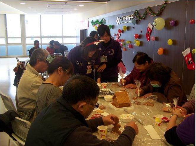 聖誕節到了,苗栗市大千綜合醫院特別舉辦「歡樂聖誕、薑心比心」活動,邀請腦中風中心「愛腦友」病友一起動手做薑餅人及裝飾薑餅屋,讓病友從練習捏、提、抓、握、拔等動作中,增加執行活動的成功經驗,除了提前共度耶誕佳節,還可達到復健的效果。