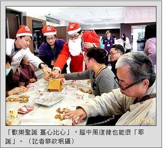 自由時報〔記者蔡政珉/苗栗報導〕腦中風復健也能很「耶誕」!苗栗市大千醫院在耶誕節前夕,邀請腦中風病友動手做薑餅人並裝飾薑餅屋,既應景又可透過手、眼協調,訓練身體機能。