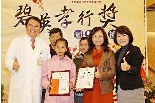 第一屆「碧英孝行獎」頒獎典禮,今天上午在大千綜合醫院舉行,共有8位就讀縣內中小學的孝行楷模接受表揚。副縣長鄧桂菊嘉許受獎者的孝親美德,並呼籲大眾及時行孝,多陪伴父母、疼惜長輩,讓孝心溫暖社會各角落。