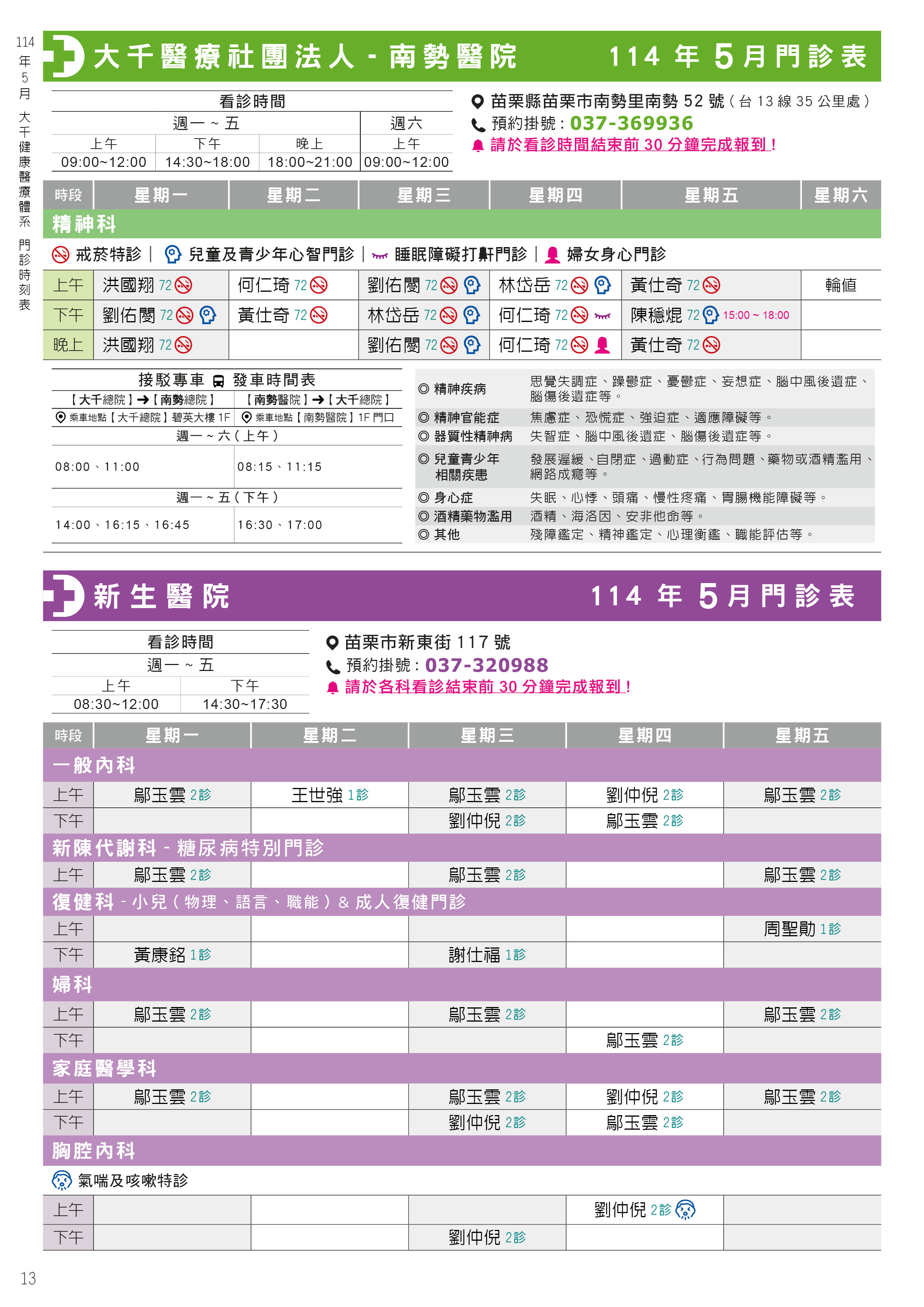 南勢醫院 - 門診時間