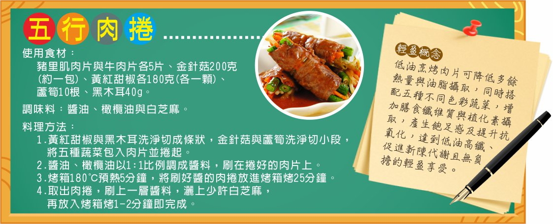輕盈飲食以低油、低糖、低鹽、高纖為主要原則,可從食物選擇、烹調方式與生活習慣上作改變: