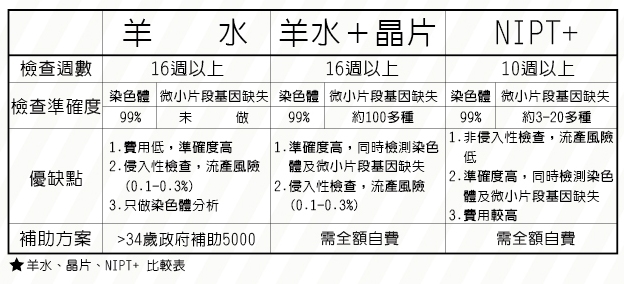 非侵入性胎兒產前檢查(Non-Invasive Prenatal Test)可以藉由抽取孕婦的血液,檢測胎兒是否有染色體異常。目前發展雖不能說已經可以完全取代羊膜穿刺檢查,但經由極高準確度(99%),和簡便、安全、非侵入性等優點,給予擔心流產風險的媽媽另一種染色體檢查選擇。目前全方位NIPT (稱NIPT+)更可以偵測出染色體微小片段的缺失,可同時偵測出常見20種微小片段基因缺失的罕見疾病。只要孕婦願意多花一些錢,非侵入性、提早偵測、全方位的產前遺傳檢查給媽媽更多一層保障。